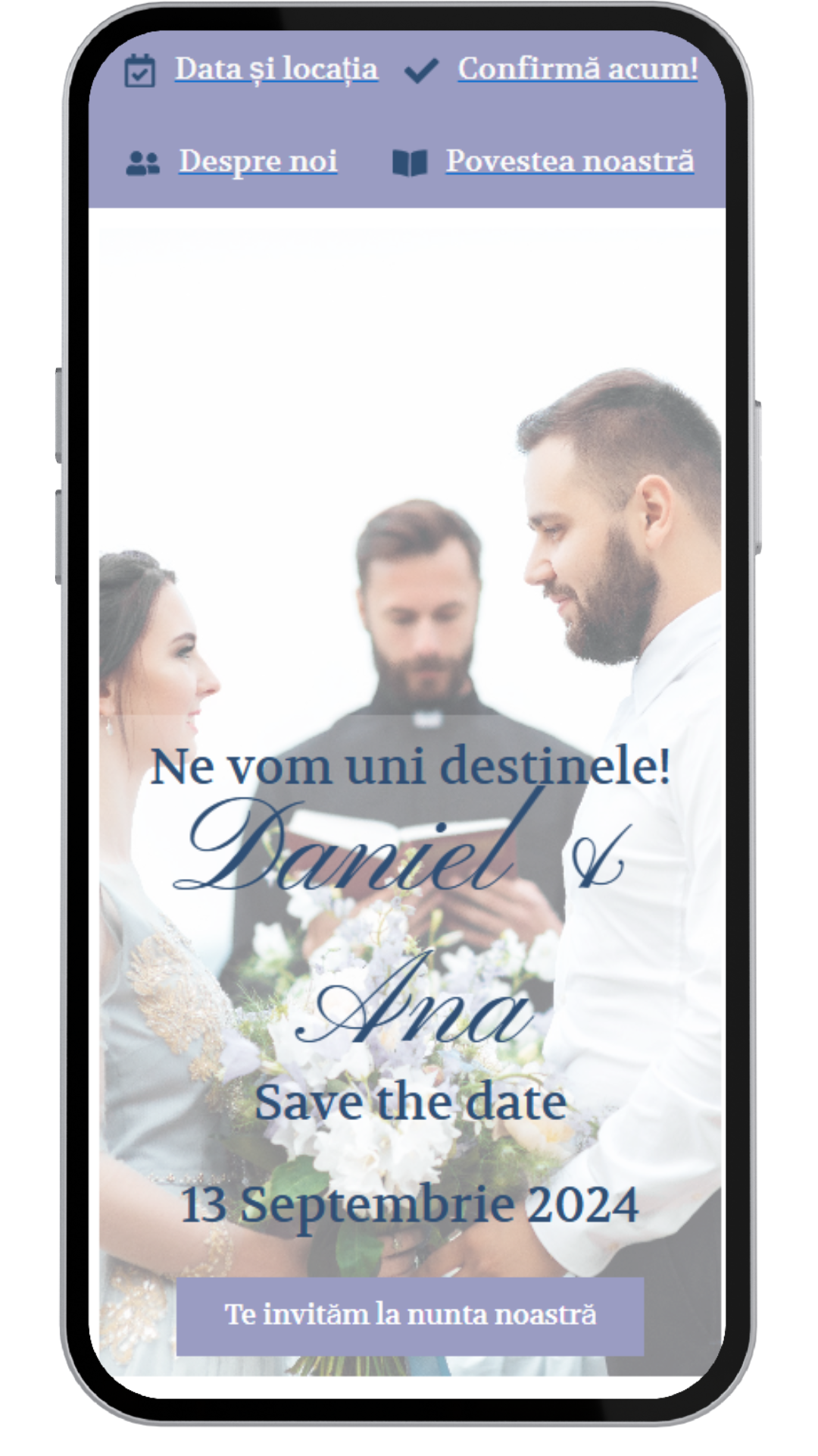În doar 24 de ore, primești invitația completă – frumos animată, gata de distribuit pe WhatsApp, e-mail sau oriunde vrei. Rapid. Elegant. Fără bătăi de cap.